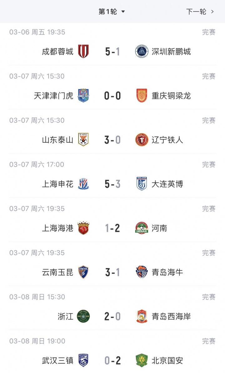 03月 14 2026 0 完美电竞直播团队-中超首轮积分榜:蓉城积3分居首,泰山负3分,津门虎负9分垫底 xiaoqiao 2026-03-14 西甲 26 03月08日讯 中超首轮全部比赛战罢,新赛季第一轮排名出炉。【相关新闻】官方:申花、津门虎被罚10分,海牛被罚7分;泰山、河南被罚6分积分榜:中超首轮赛果↓